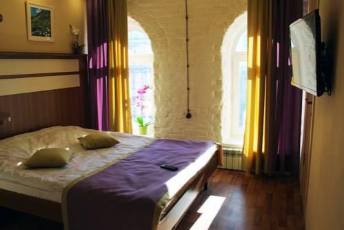 Кровать в общем звукоизолированном номере с кондиционером и спутниковым телевидением.